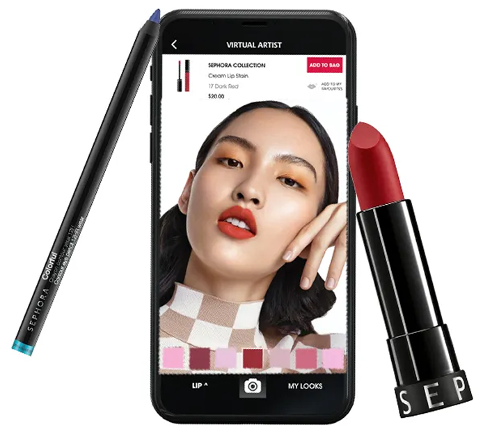 Their mobile app delivers a virtual shopping experience, allowing users to browse product tutorials, try-on makeup via augmented reality, shop directly, and build loyalty profiles.